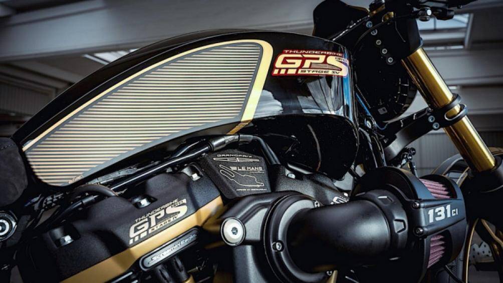 Thunderbike đã tạo nên Harley-Davidson GP S Le Mans từ Harley-Davidson Breakout, là một trong những bản độ dành cho đường đua Le Mans khắc nghiệt |