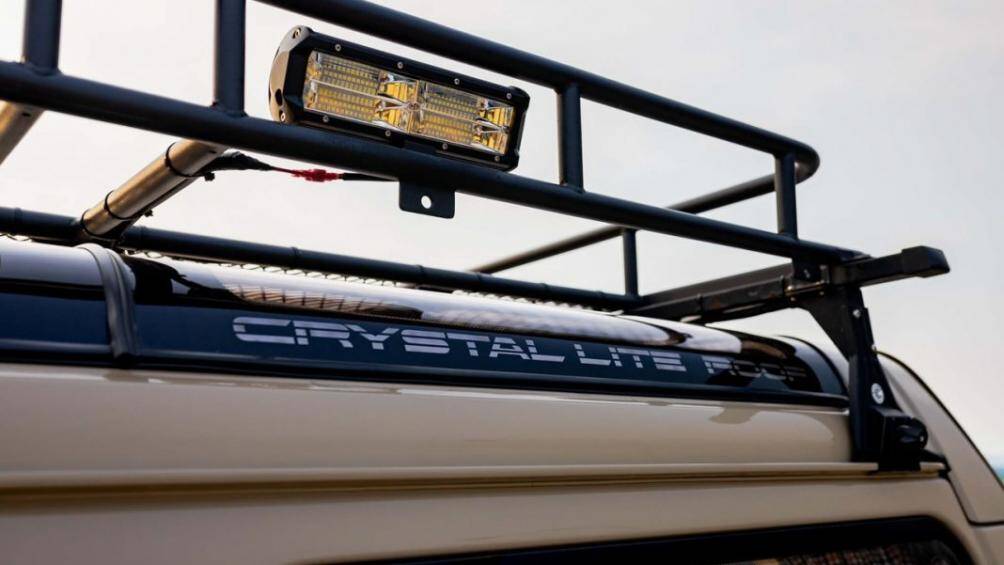 Xe sở hữu bộ ống xả titan, cản va phía trước, giá để đồ trên nóc, thang leo phía sau cùng rất nhiều đèn chiếu sáng |
