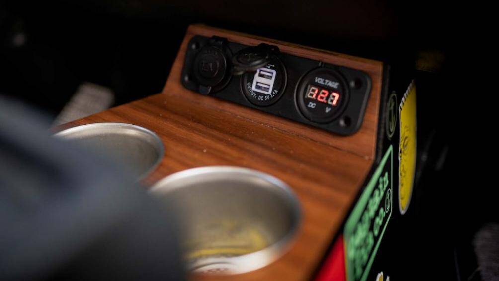Ở trong khoang nội thất, hàng ghế sau nguyên bản được thay bằng băng ghế dài có thể ngả được với các ngăn chứa đồ bên dưới |