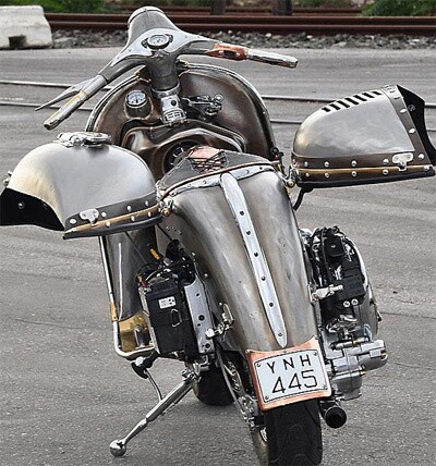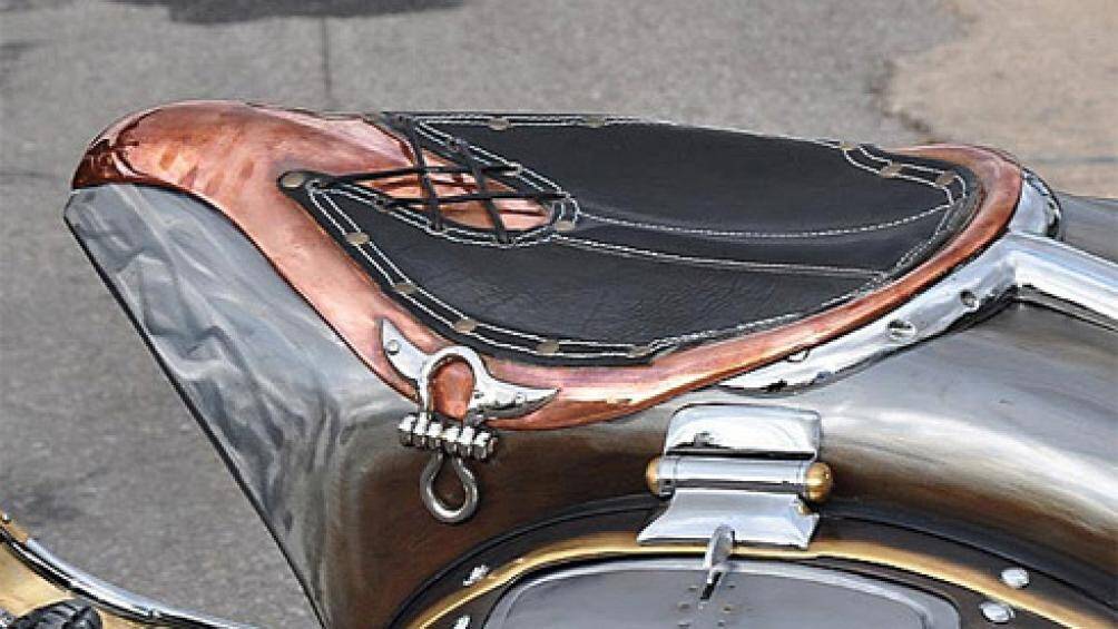Chiếc scooter độ được nghệ sĩ điêu khắc người Hy Lạp thiết kế theo chủ đề steampunk - dạng khoa học viễn tưởng |