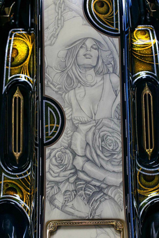 Một người chơi xe có tên John Shope đã biến chiếc Harley Davidson Road King thành một kỳ quan với các chi tiết nghệ thuật và lớp mạ vàng cao cấp 24 karat |