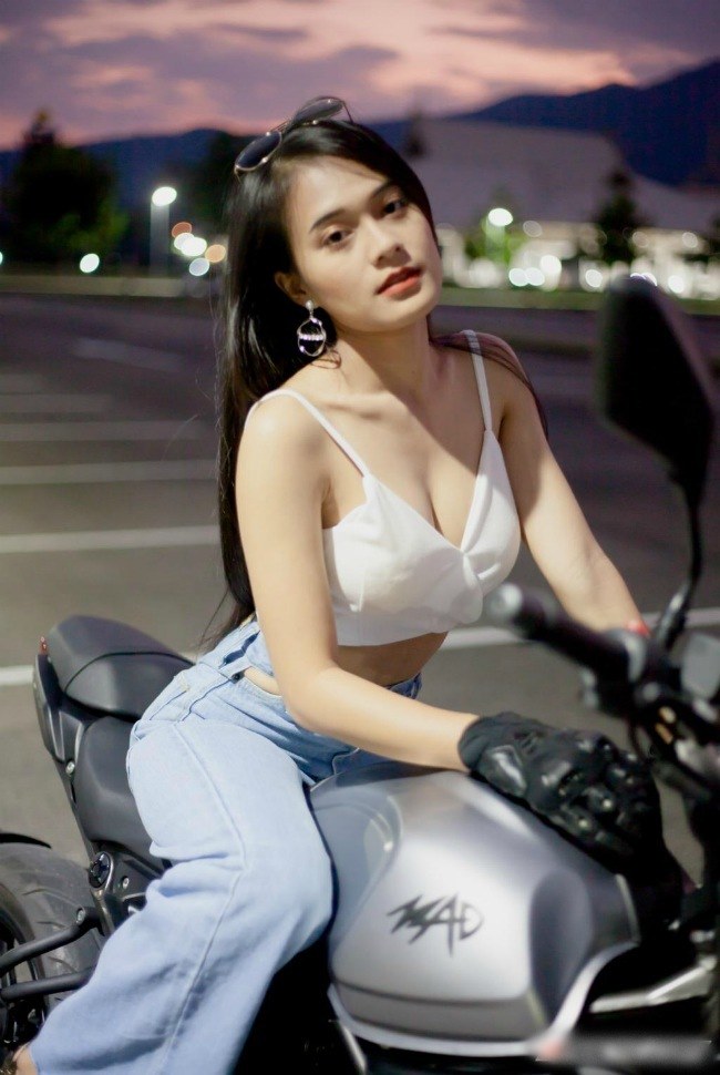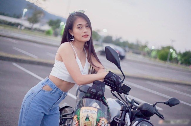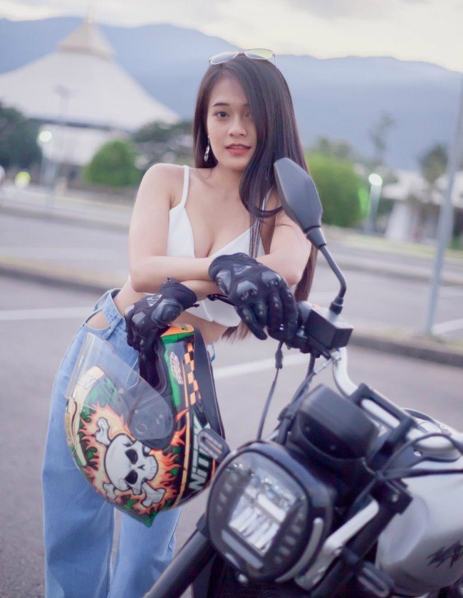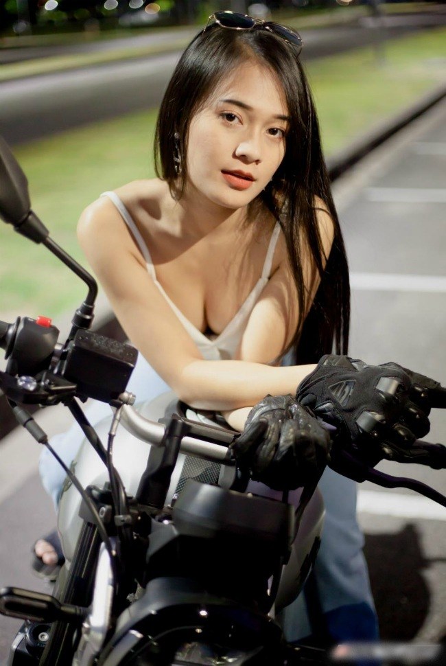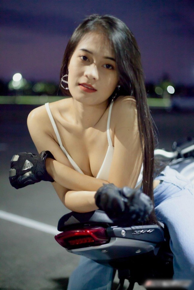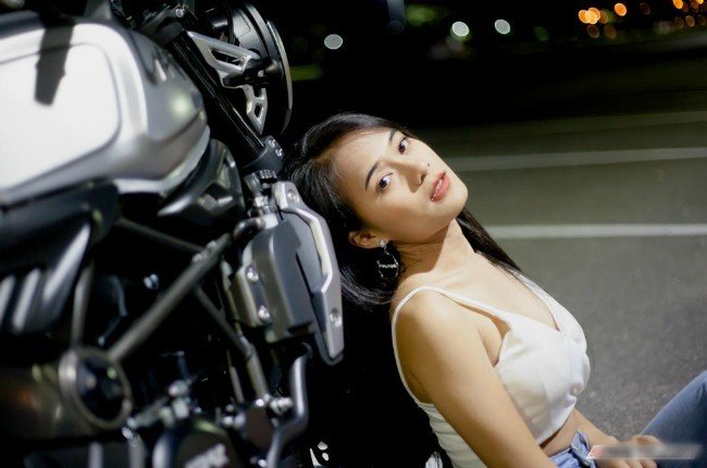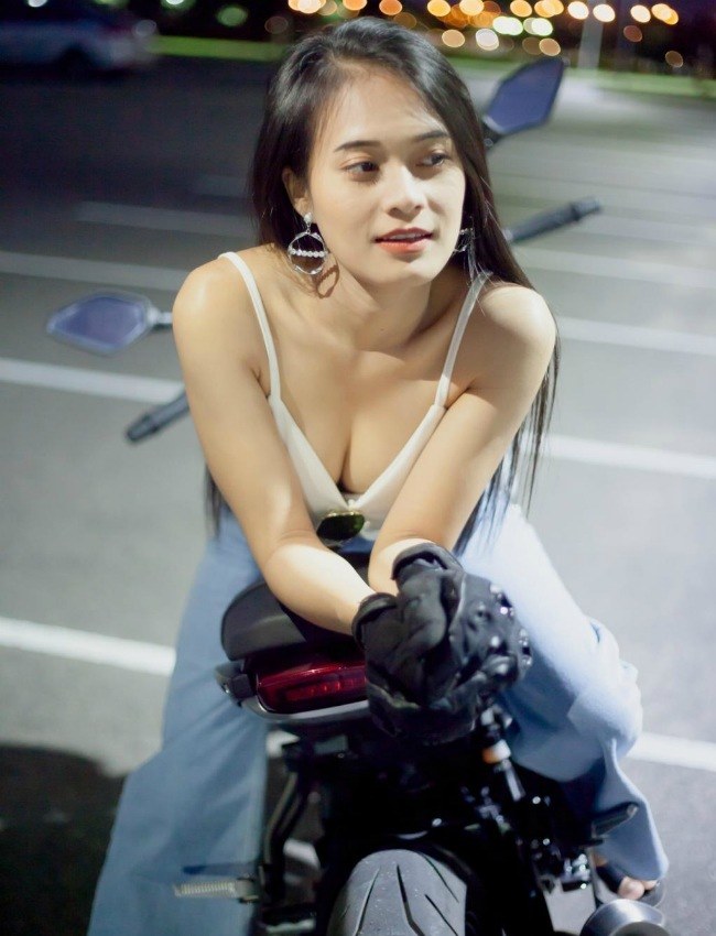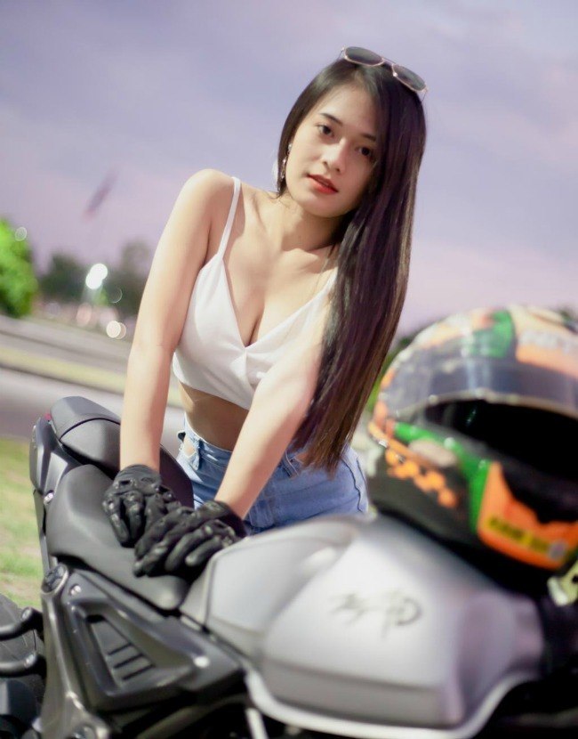 Cô gái sở hữu vòng một nóng bỏng thả dáng bên xe phân khối lớn