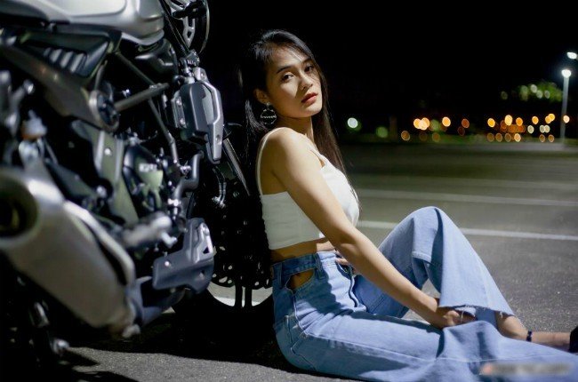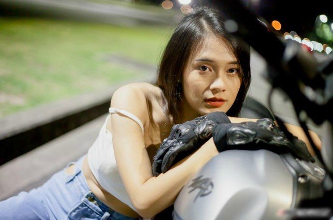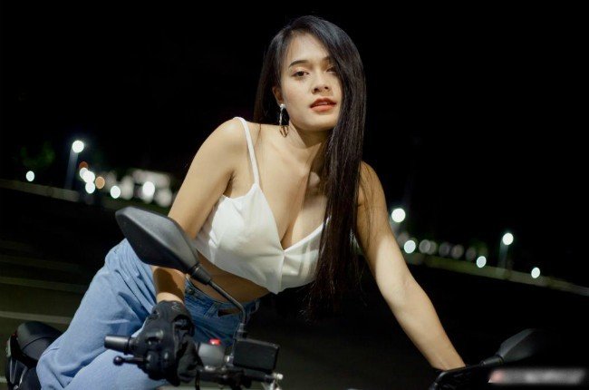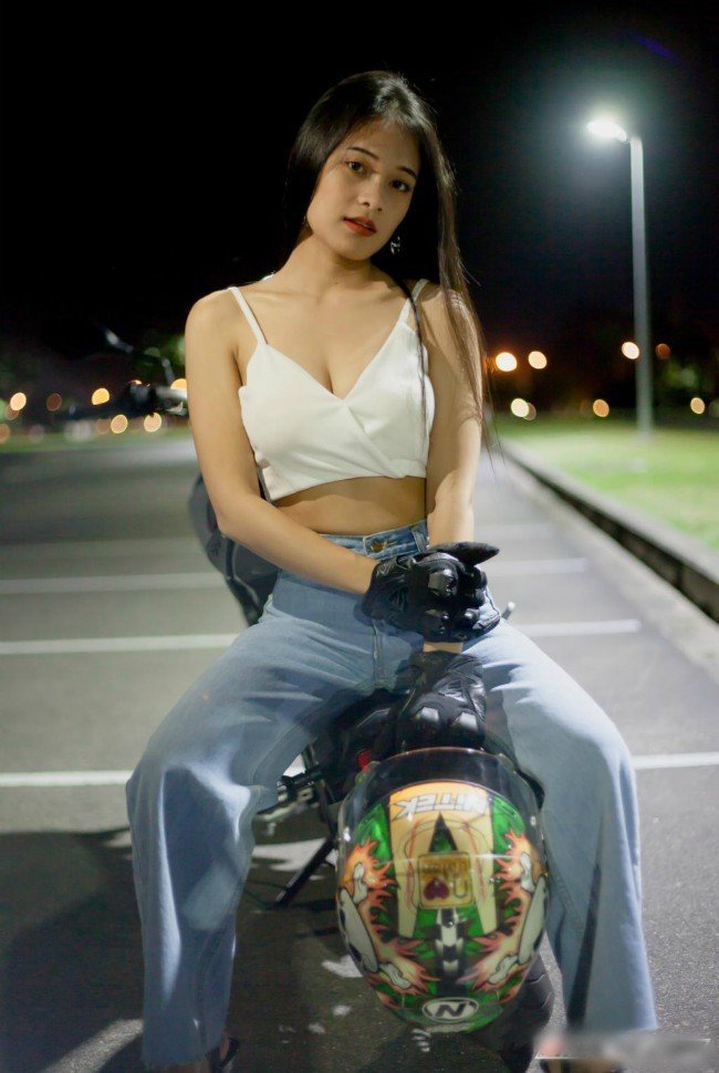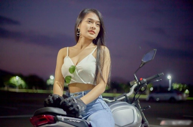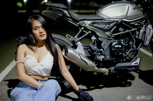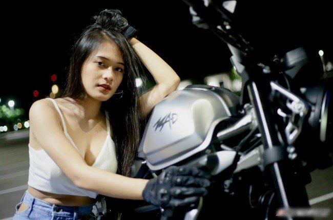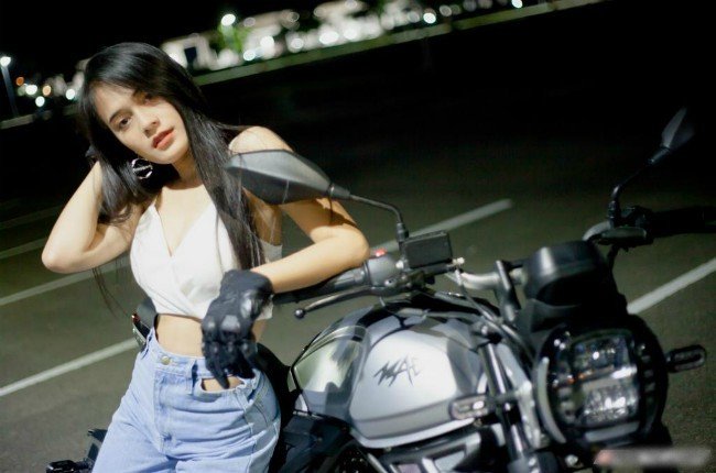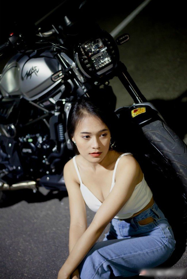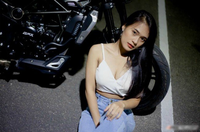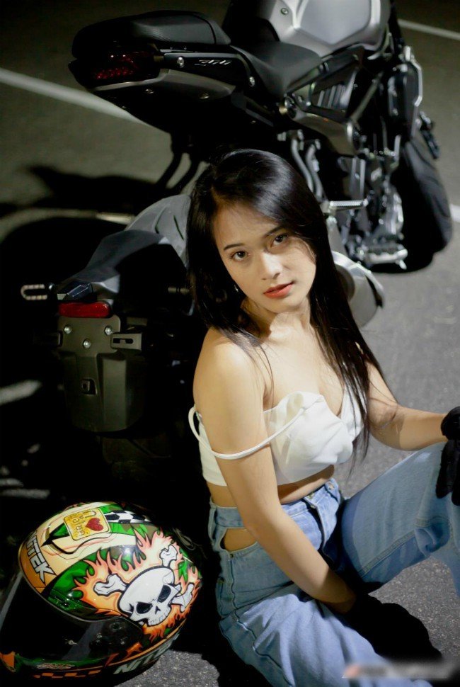 Cô gái sở hữu vòng một nóng bỏng thả dáng bên xe phân khối lớn