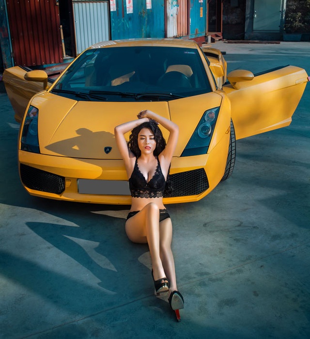 Hotgirl Linh Miu khoe nội y táo bạo bên siêu xe Lamborghini Gallardo