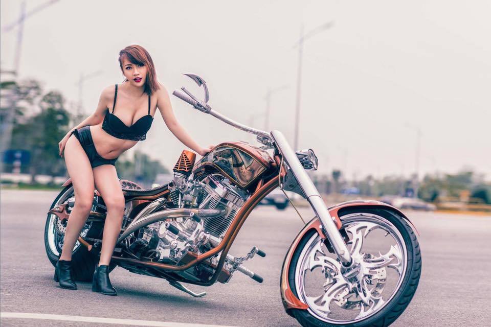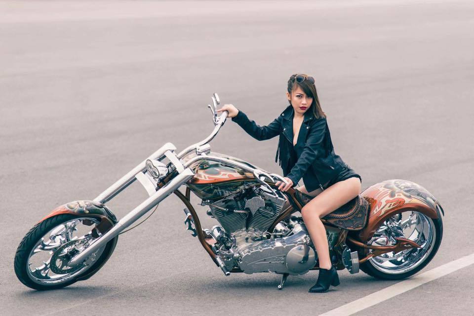 Dưới đây là bộ ảnh hotgirl Ngân Lee tạo dáng gợi cảm bên chiếc mô tô Chopper cực hiếm đầy cuốn hút |