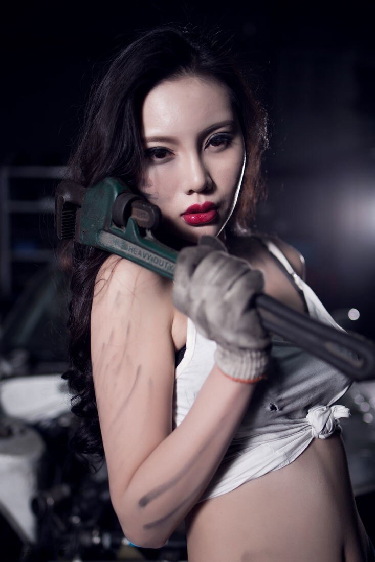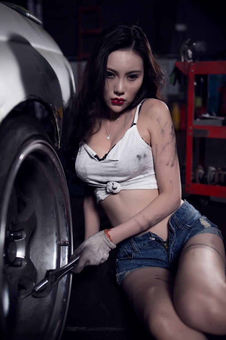 Ngắm cô nàng sửa xe lấm lem với thân hình chết người