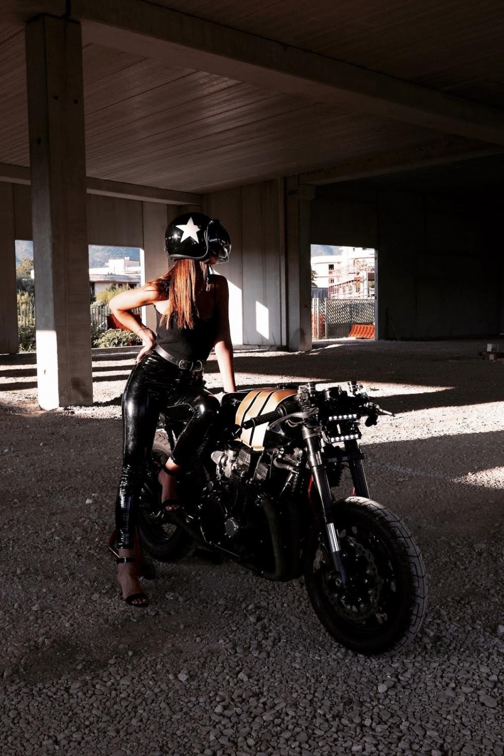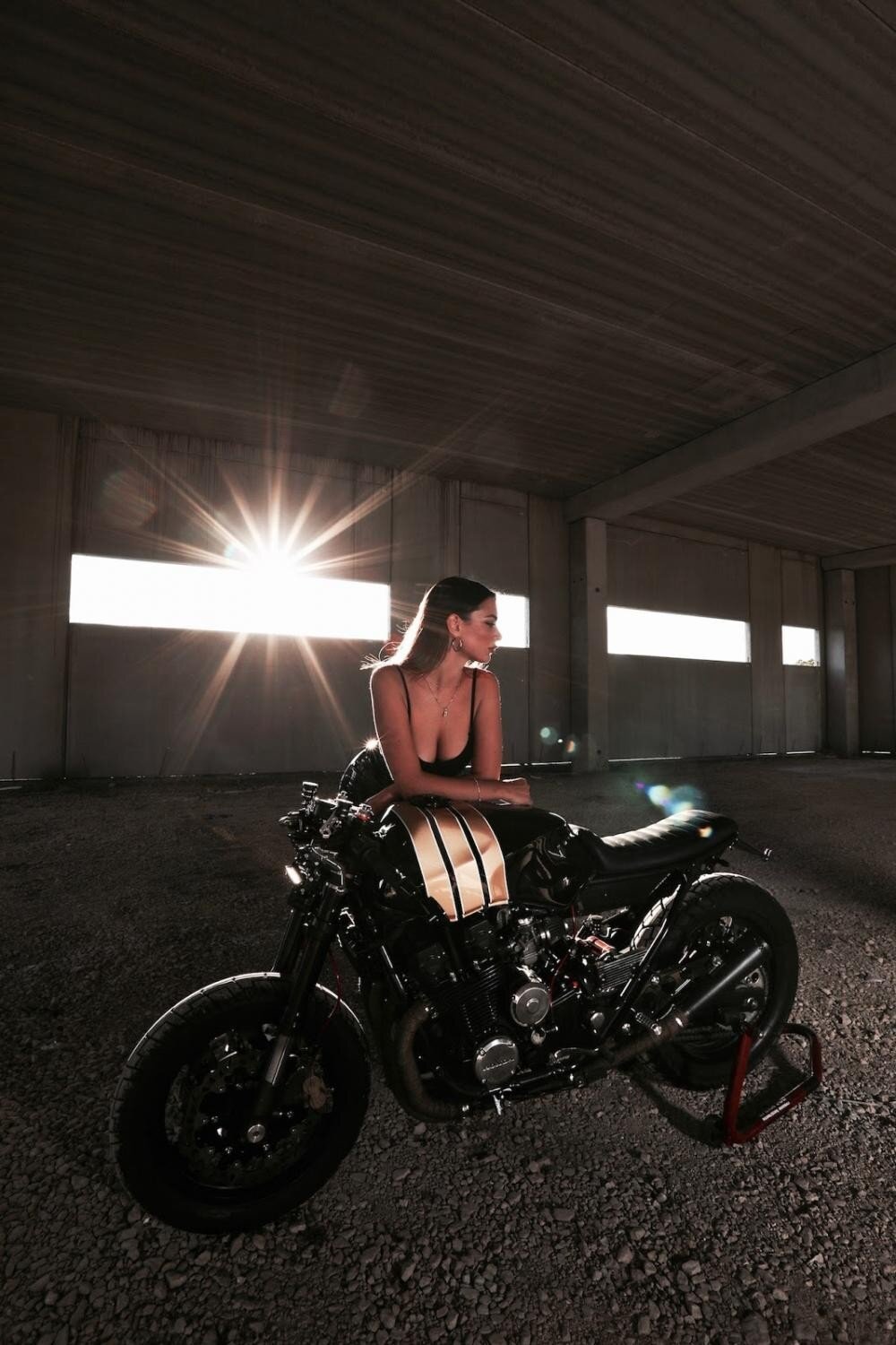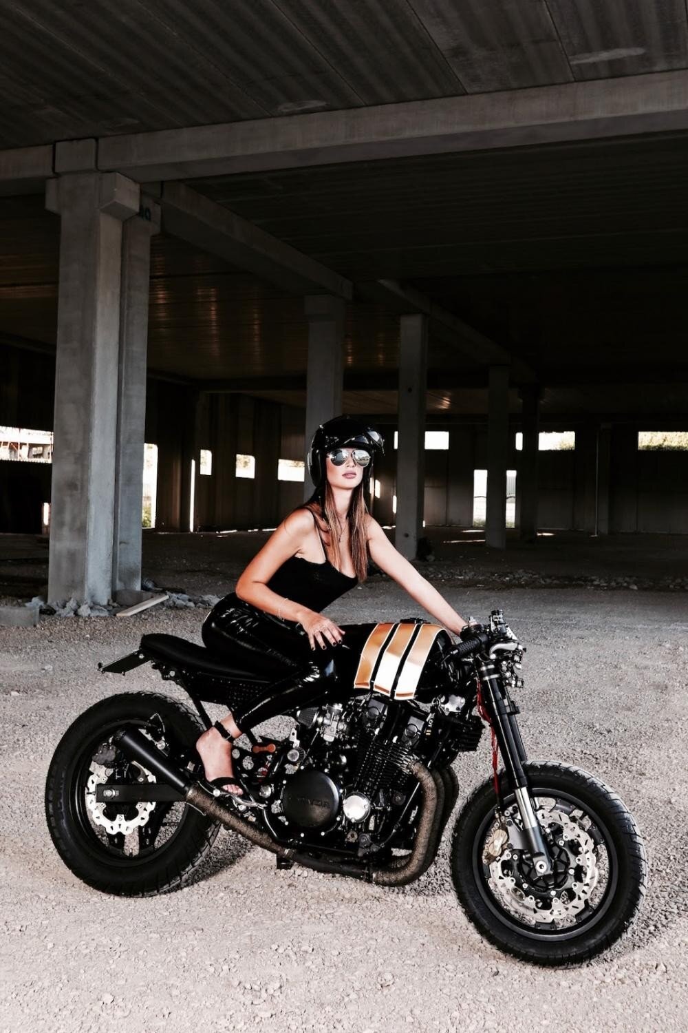 Ngắm mẫu Tây thả dáng nóng bỏng bên xế độ Honda CBX 750F
