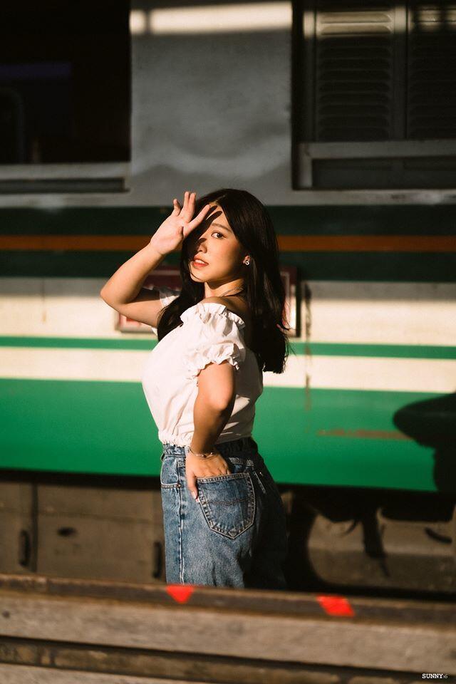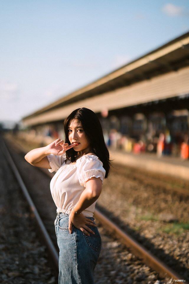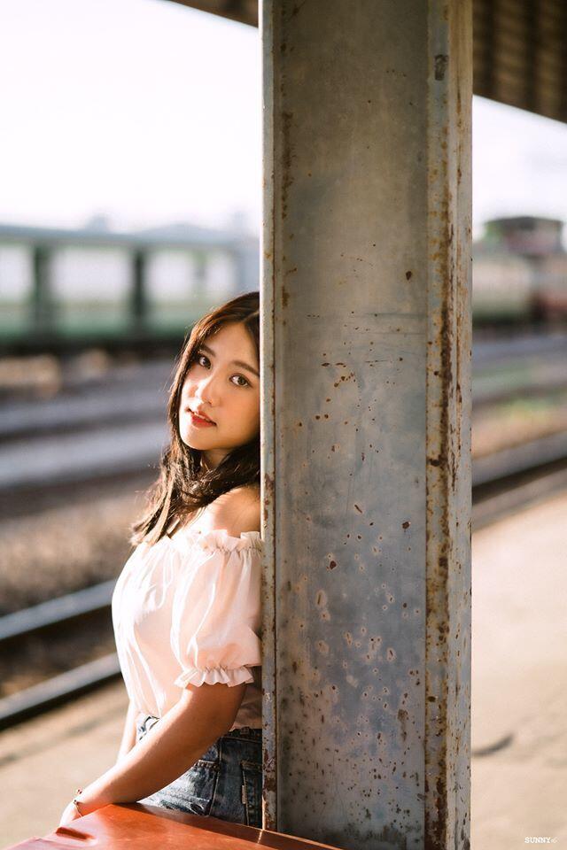 Ngẩn ngơ trước vẻ đẹp dịu dàng của hot girl bên ga tàu