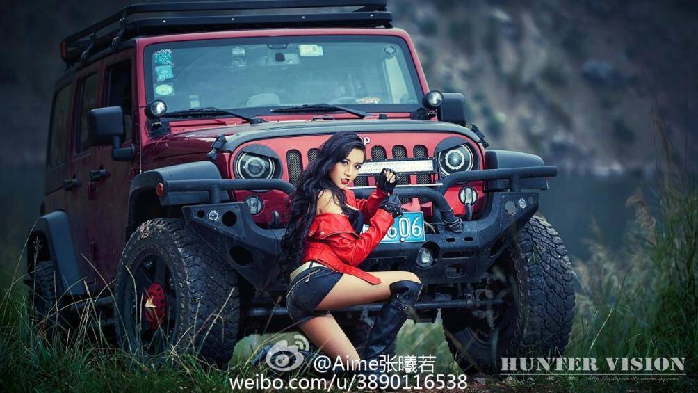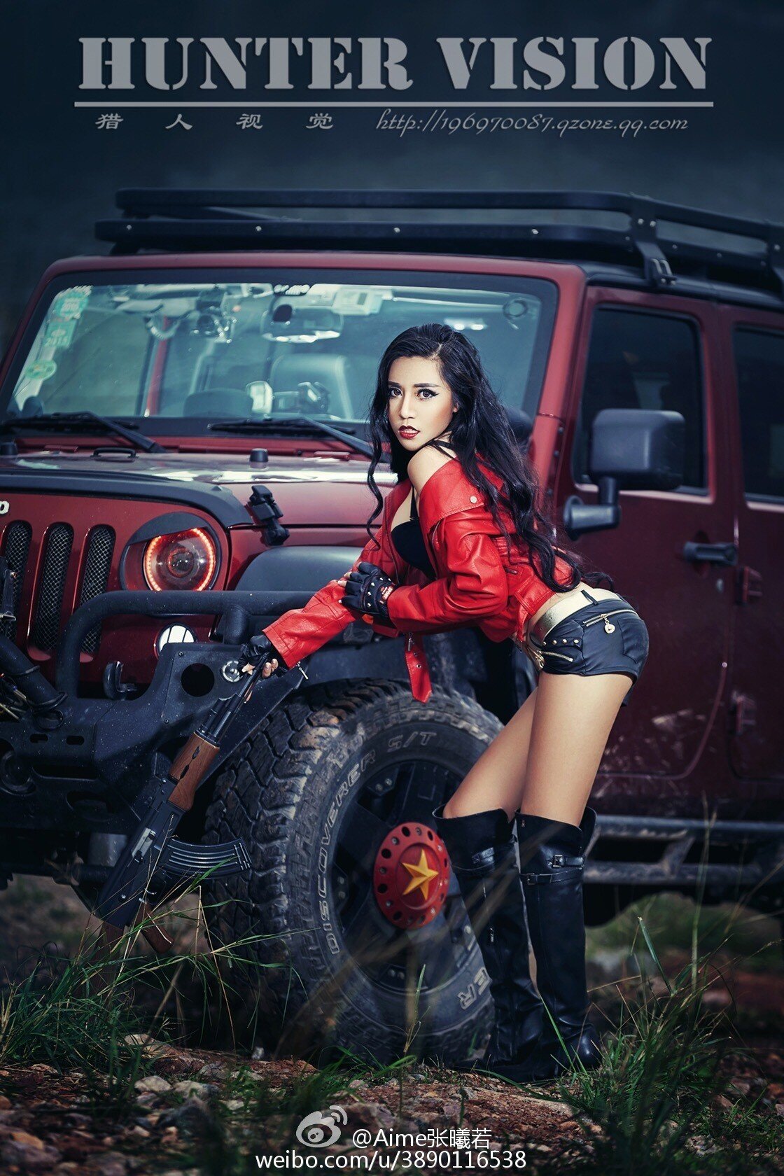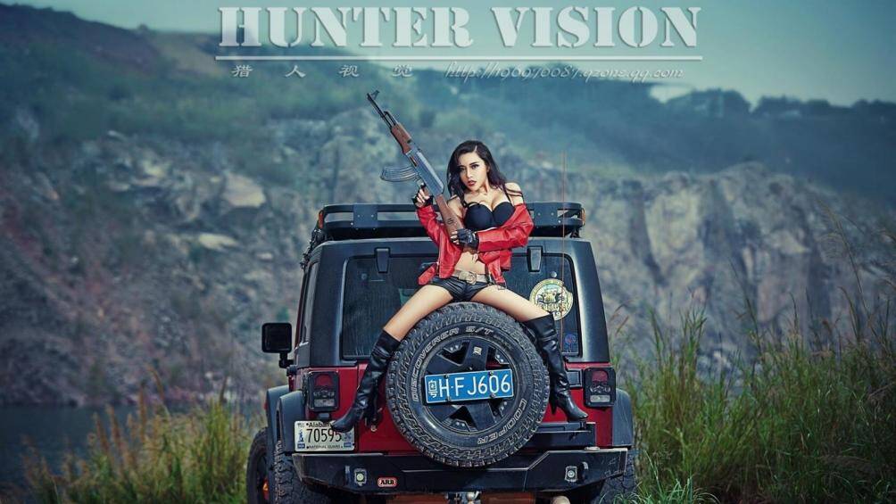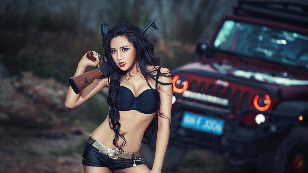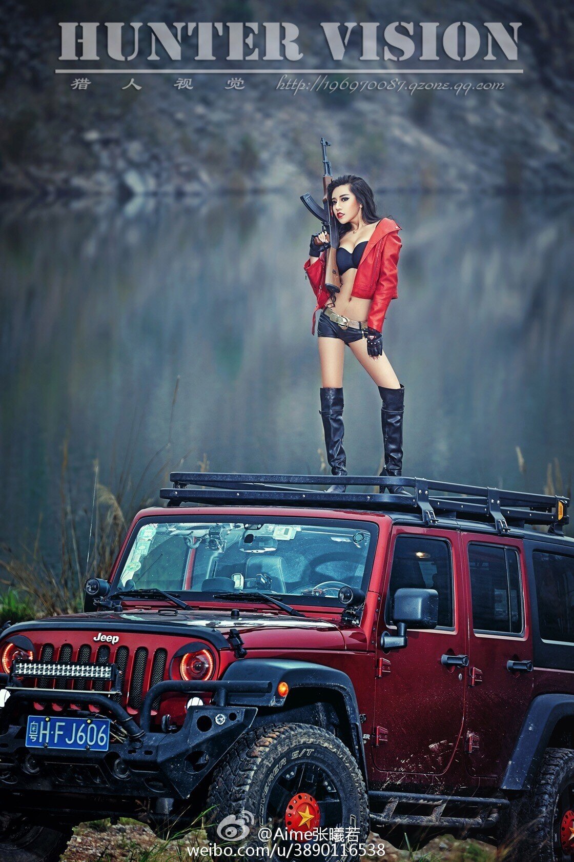 Người đẹp cuốn hút với cây súng bên Jeep Wrangler