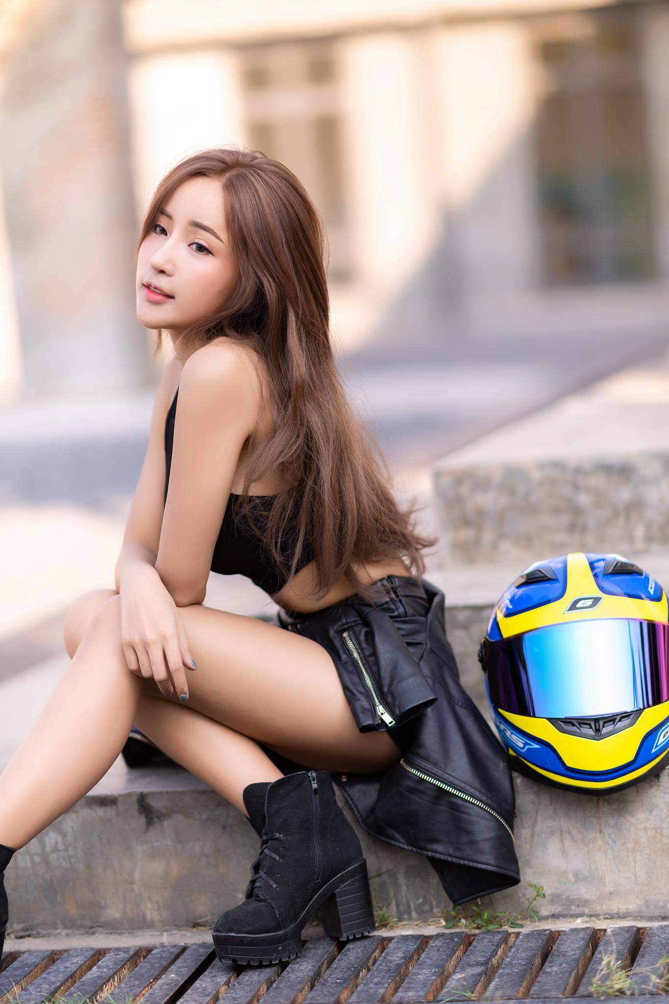 Người đẹp tạo dáng quyến rũ với mũ bảo hiểm