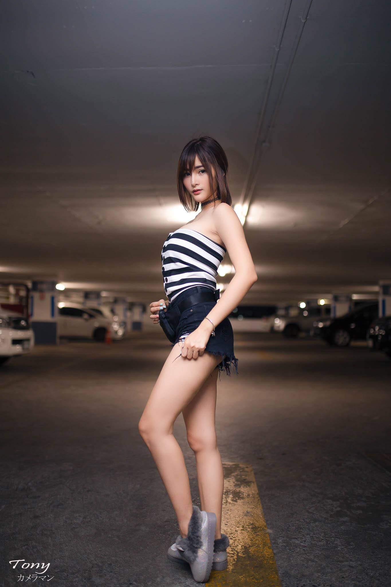 Không phải trong những triển lãm đông đúc hay bên cạnh những chiếc siêu xe đắt tiền, cô nàng Walaya Niwon lại chọn cách thả dáng bên trong bãi đỗ xe vắng vẻ |