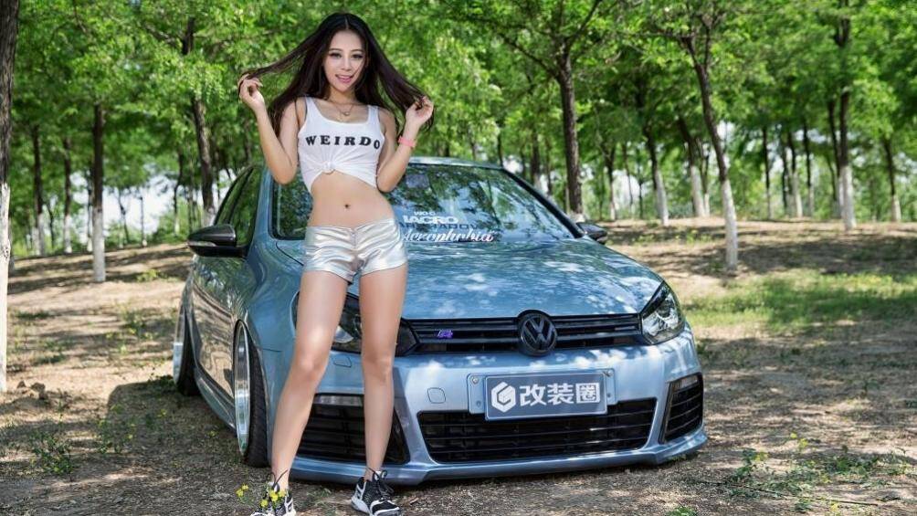 Người đẹp Vương Đóa Đóa khoe vòng 1 bốc lửa bên Volkswagen Golf MK6