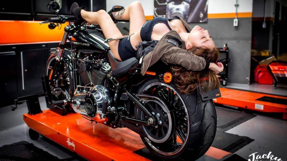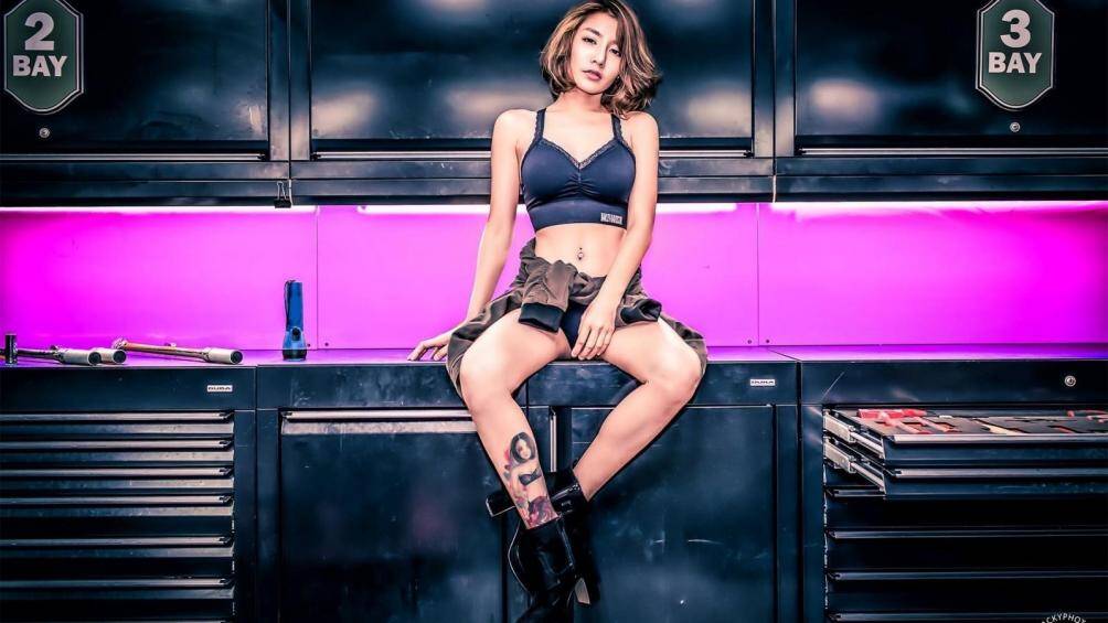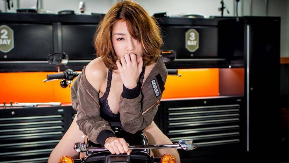 Người mẫu Thái Lan quyến rũ trong garage sửa mô tô