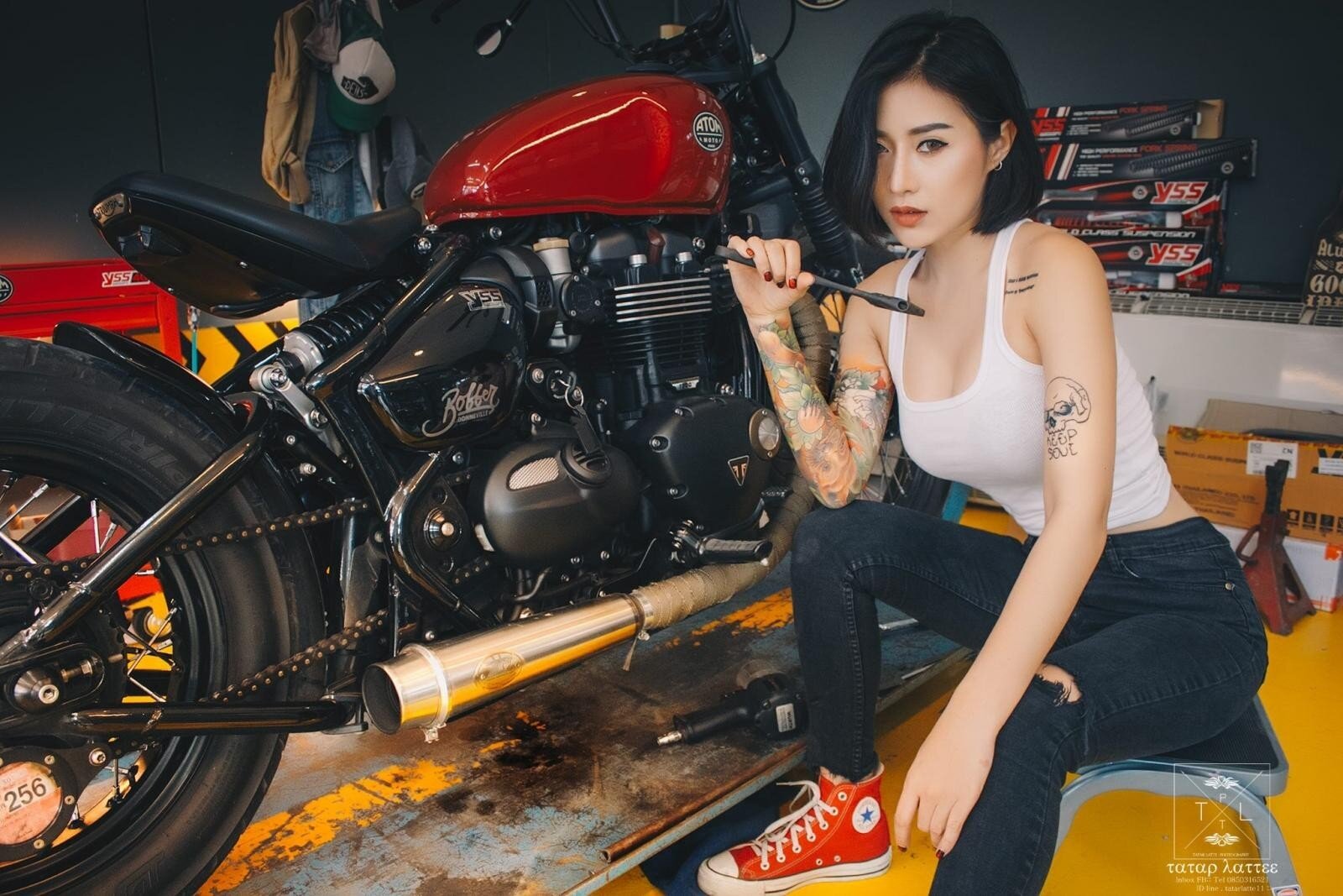 Nữ biker Thái Lan khoe đường cong nóng bỏng bên siêu mô tô Triumph