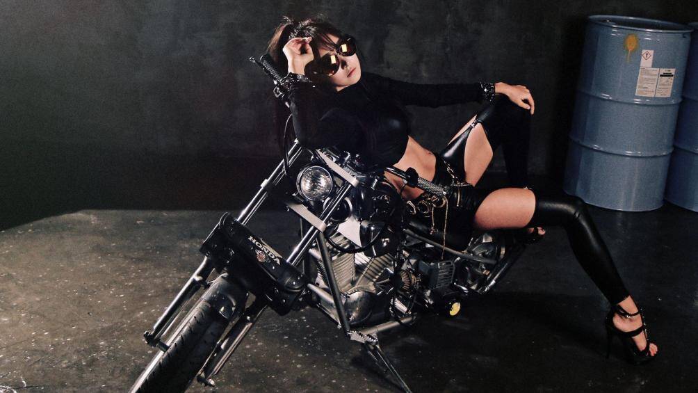 Thiếu nữ mặc đồ bó sát khoe dáng cực ngầu bên xế cổ Honda Magna
